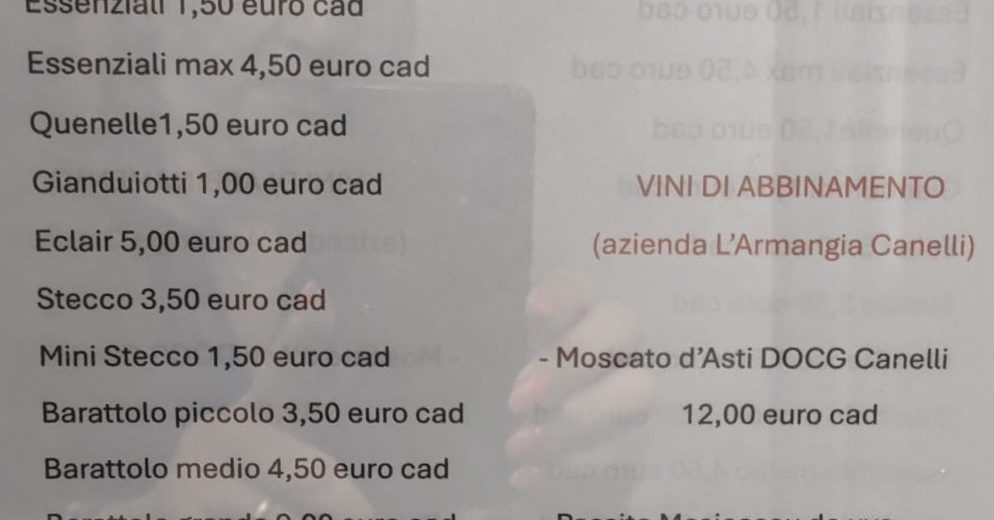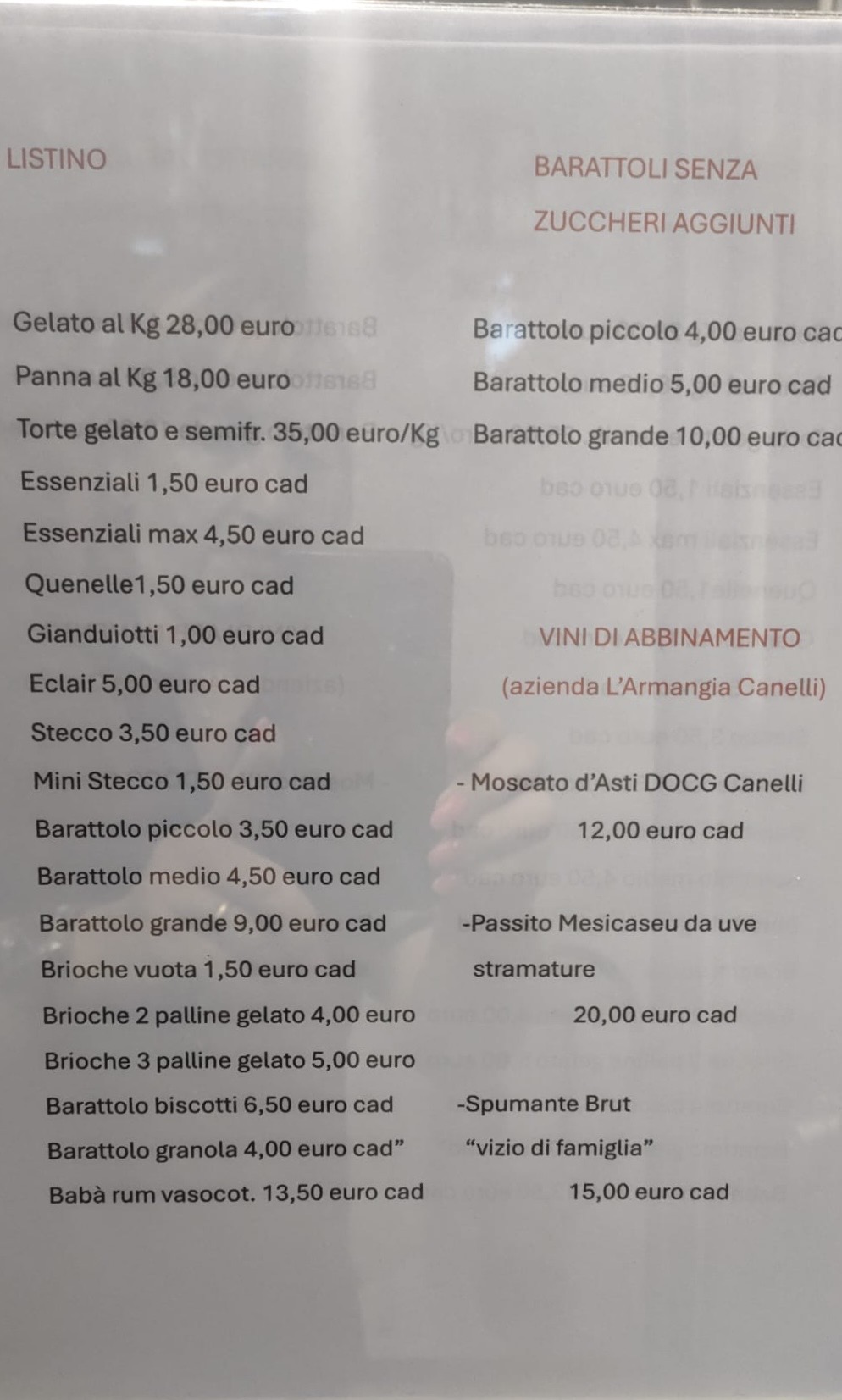 Allego il listino prezzi dei prodotti e dei gusti di questa settimana comprensivo dei vini da dessert selezionati per l’abbinamento della Cantina L’Armangia Canelli (At) di Ignazio Giovine.