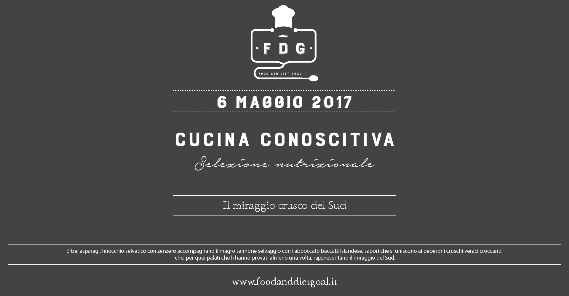 Erbe, asparagi, finocchio selvatico con zenzero accompagnano il magro salmone selvaggio con l’abboccato baccalà islandese, sapori che si uniscono ai peperoni cruschi veraci croccanti, che, per quei palati che li hanno provati almeno una volta, rappresentano il miraggio del Sud.